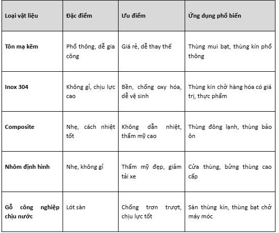 Thùng đông lạnh / bảo ôn: cần thêm vật liệu cách nhiệt, máy lạnh → giá cao hơn
