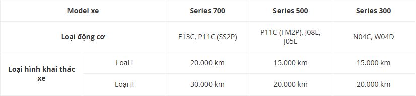 - Hino 300 Series (N04C): 15.000 - 20.000 km